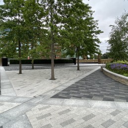 terra firma worked with Ramboll UK and SISK contractors to create a contemporary new public plaza and pedestrian and vehicular bridged access routes at the entrance to a major St James housing development in the heart of West London.